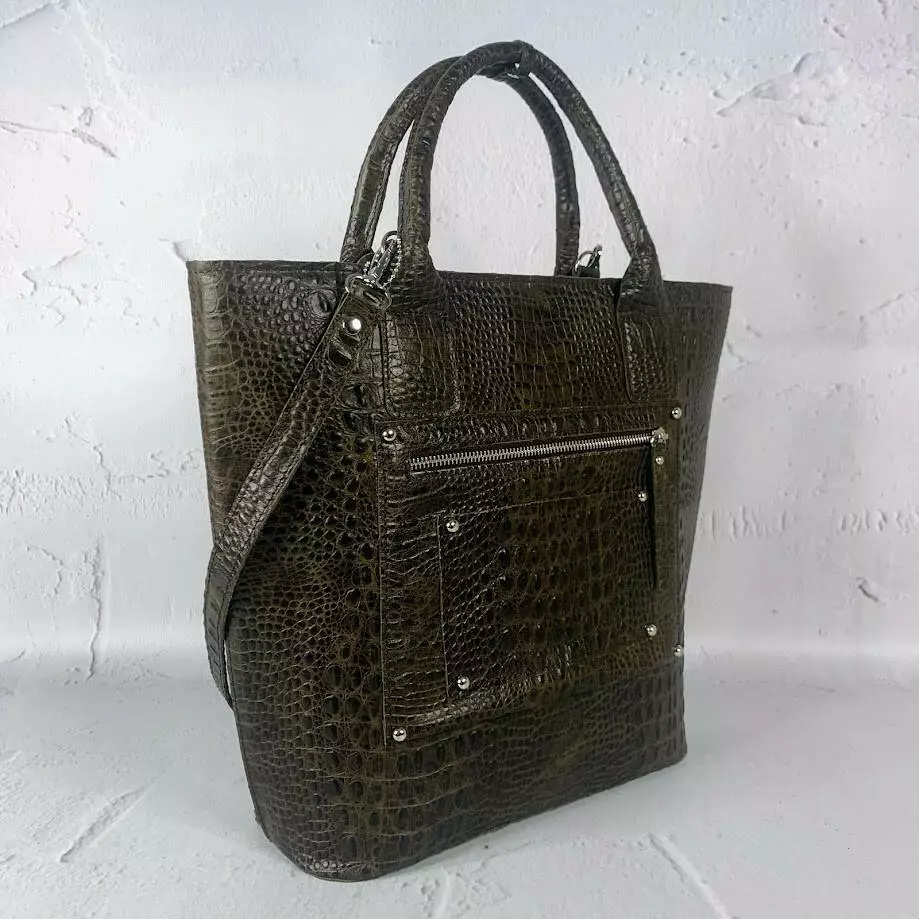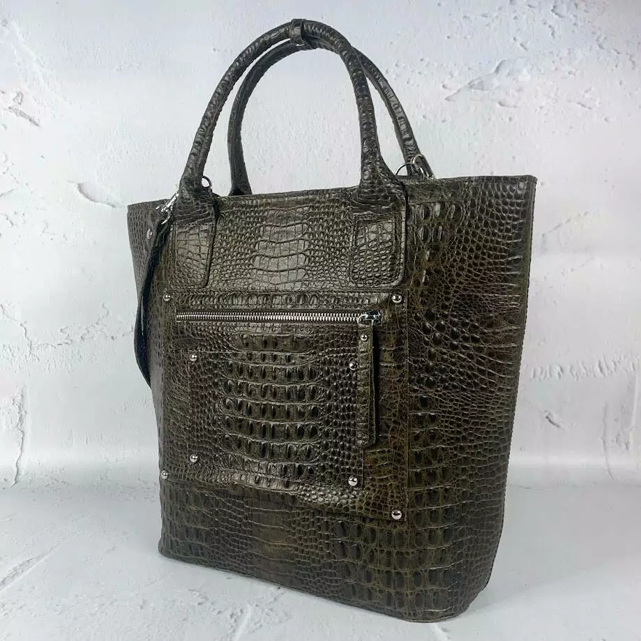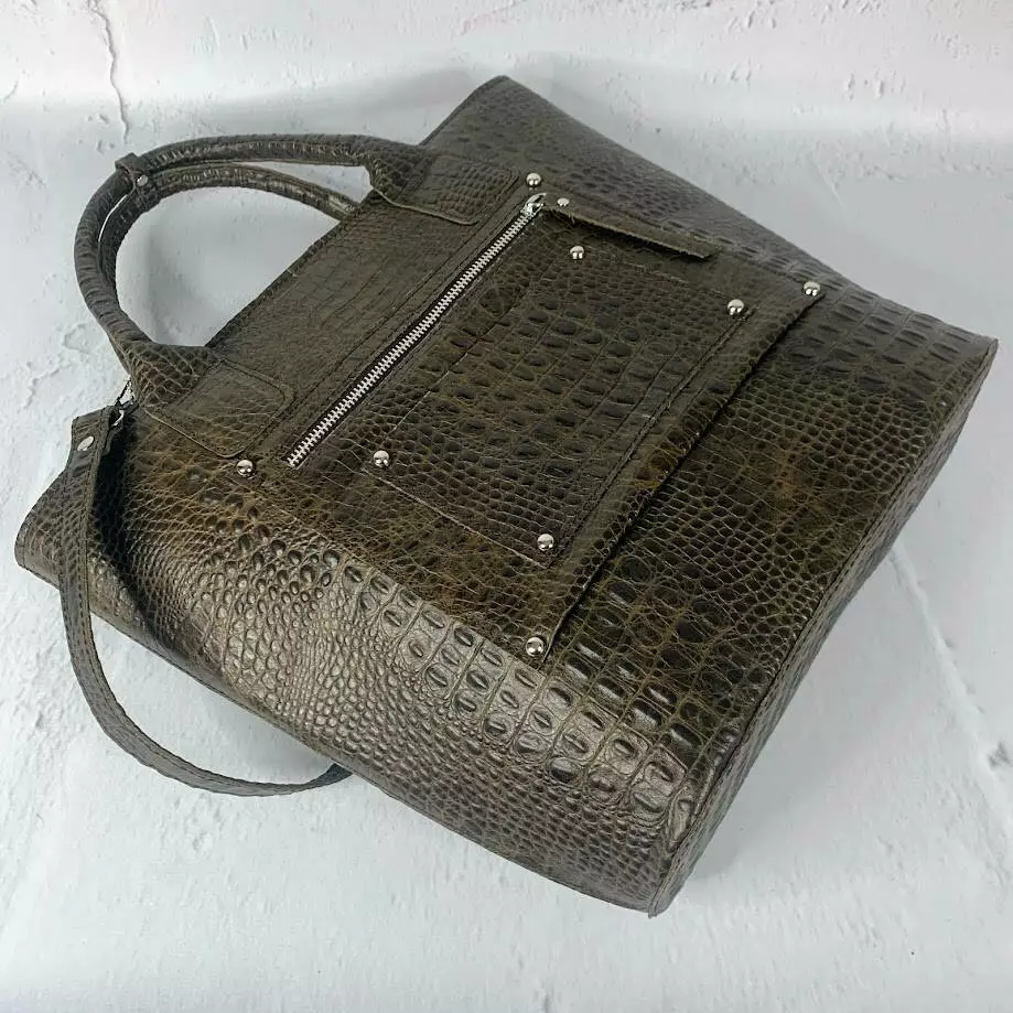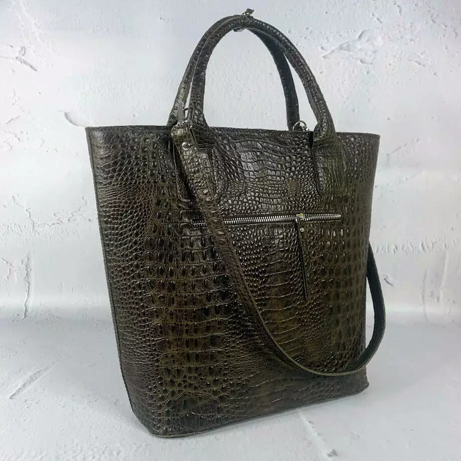 Сумка женская "Сиена" натуральная кожа, коричневая с тиснением под крокодила