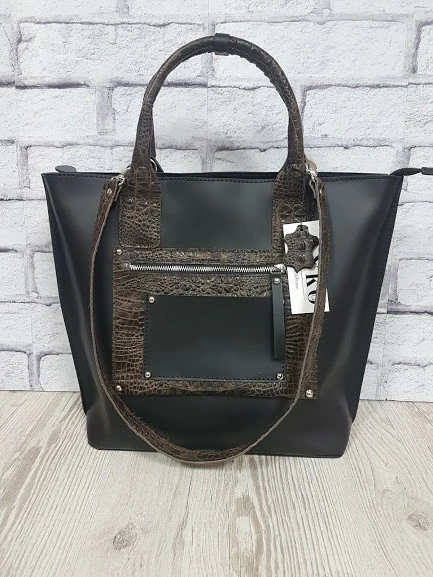 Сумка женская "Сиена" натуральная кожа, черная матовая комбинированная