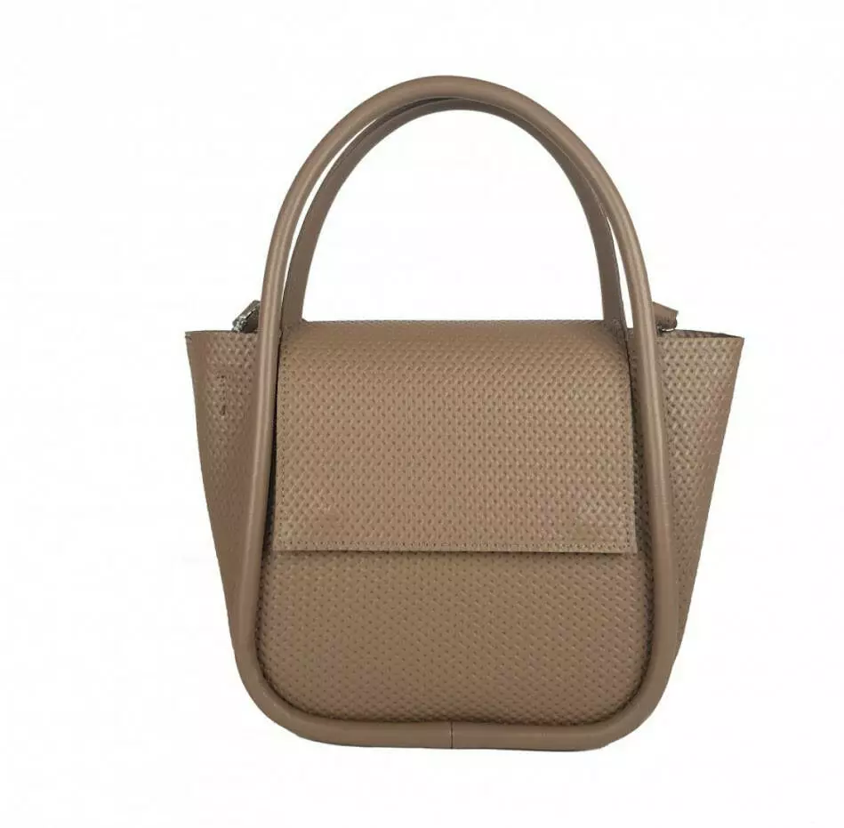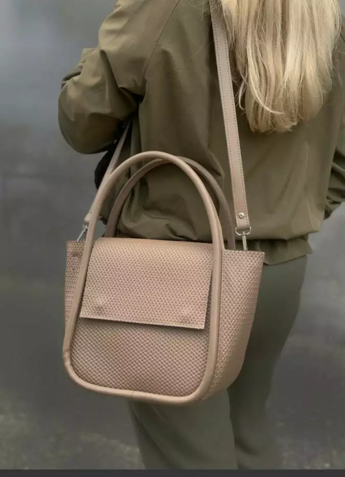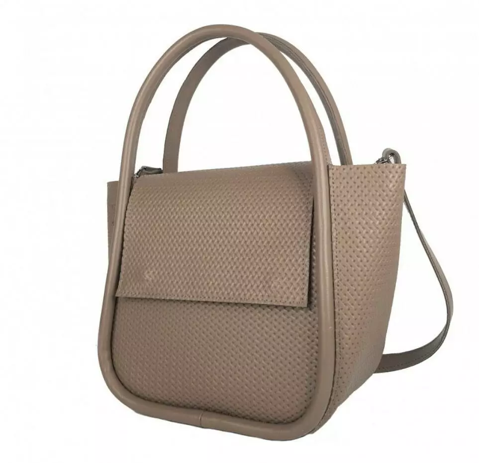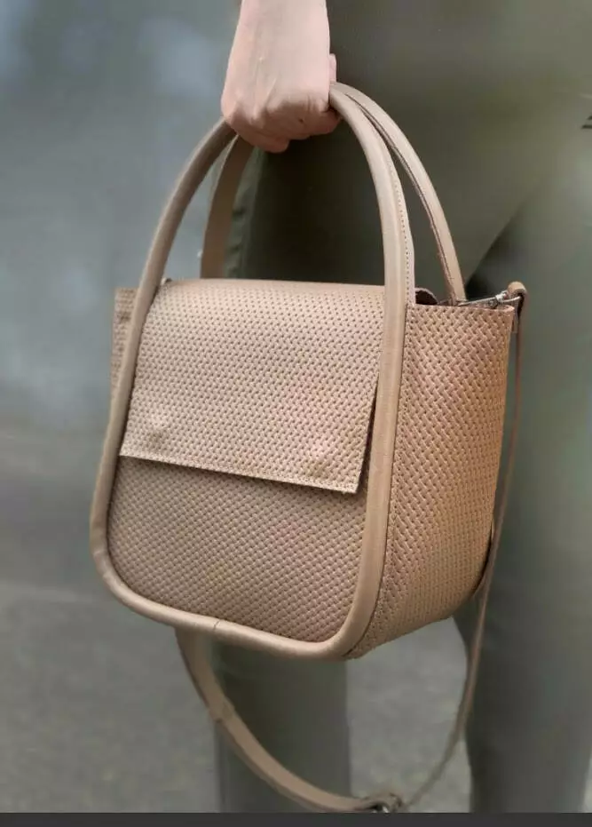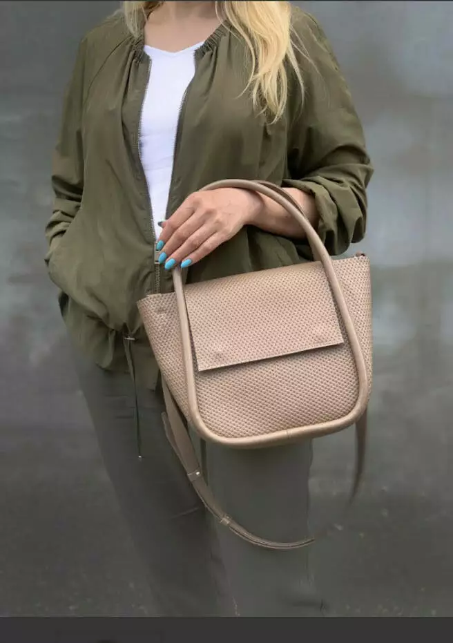 Сумка женская "София" натуральная кожа, латте с тиснением под плетенку
