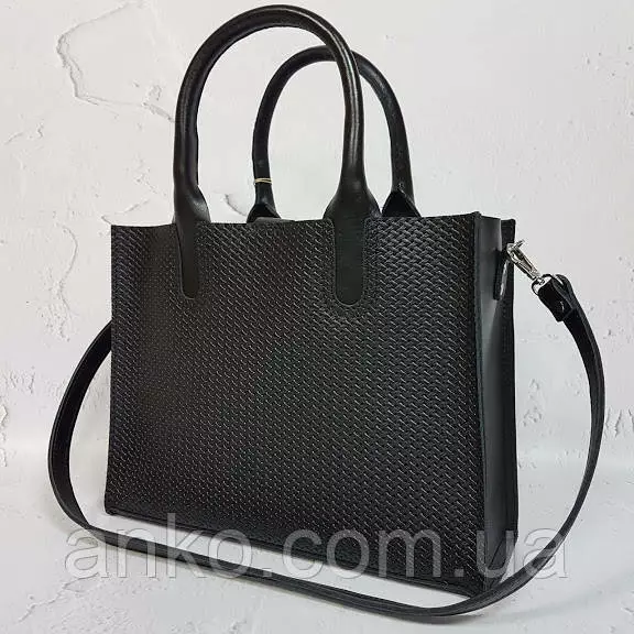 Сумка женская "СОЛО" натуральная кожа, черная с тиснением под плетенку