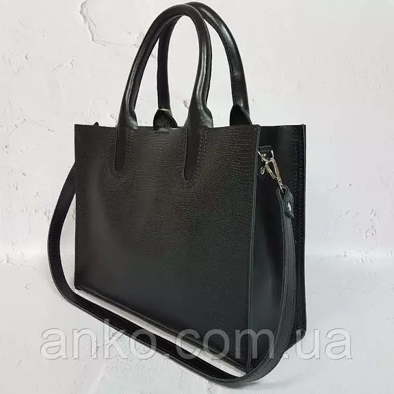 Сумка женская "СОЛО" натуральная кожа, черная с тиснением под рептилию