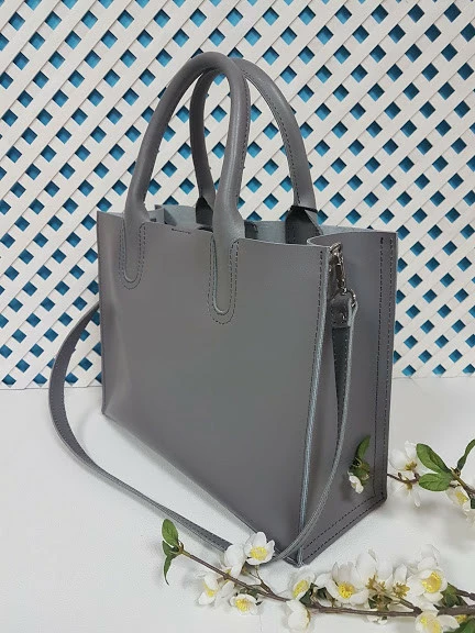 Сумка женская "СОЛО" натуральная кожа, серая матовая