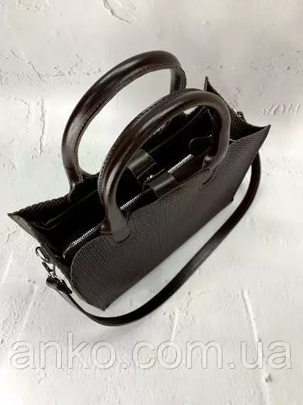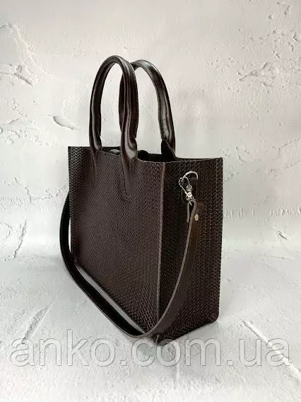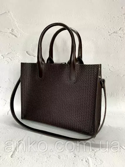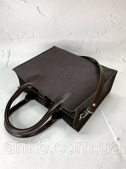 Сумка женская "СОЛО" натуральная кожа, шоколадная с тиснением под плетенку