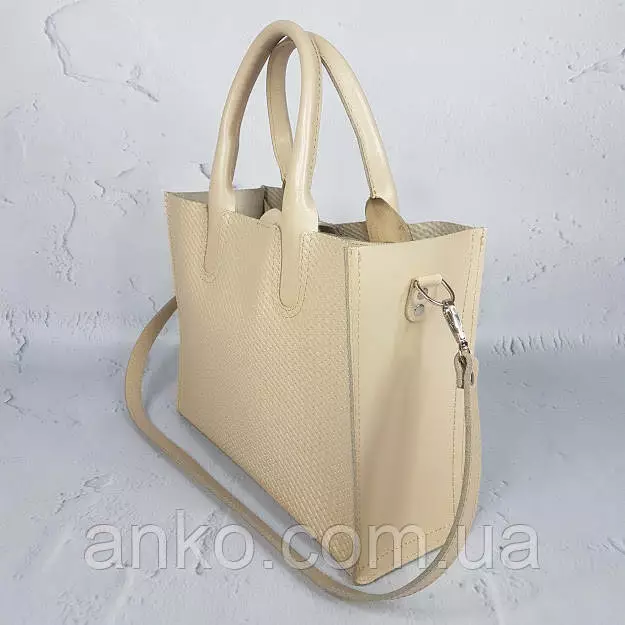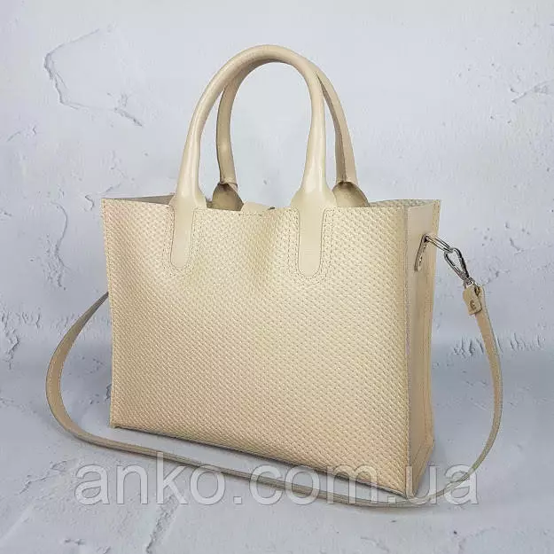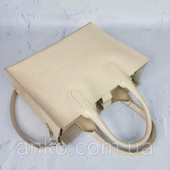 Сумка женская "СОЛО" натуральная кожа, слоновая кость тиснение под плетенку