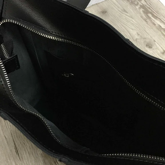 из натуральной кожи. Сумка без подкладки, закрывается на молнию,