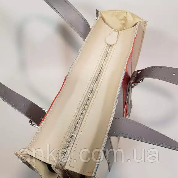 из натуральной кожи. Сумка без подкладки, закрывается на молнию,