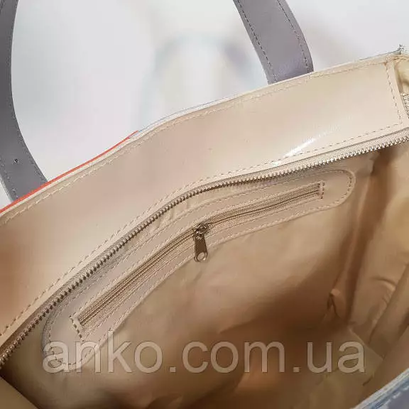 Сумка женская "СТРАЙП" натуральная кожа, слоновая кость/серая
