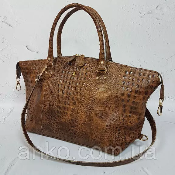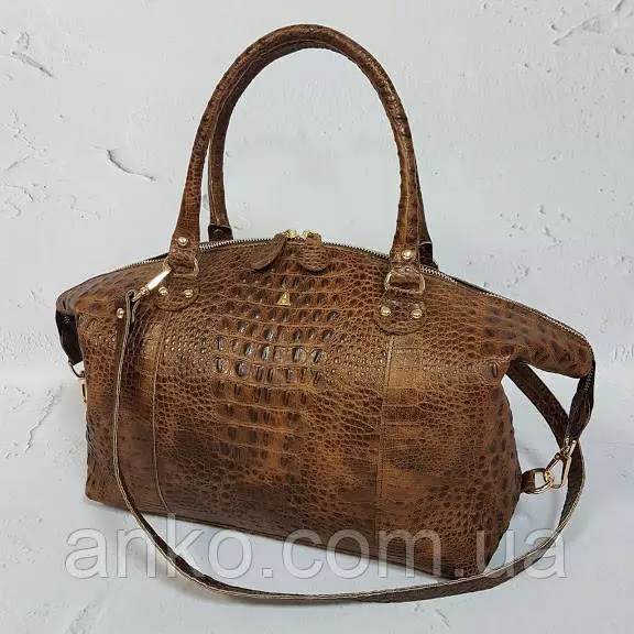 Сумка женская "Верона" натуральная кожа, рыжая с тиснением под крокодила