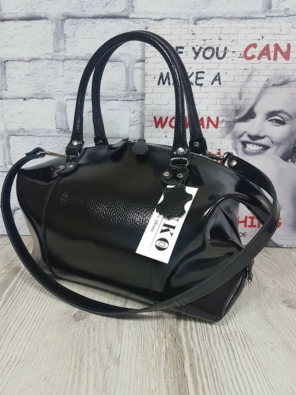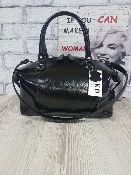 Сумка женская "Верона" натуральная кожа, черный глянец с рептилией