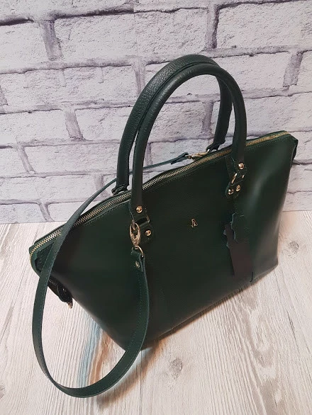 Сумка женская "Верона" натуральная кожа, темно-зеленая с тиснением под рептилию