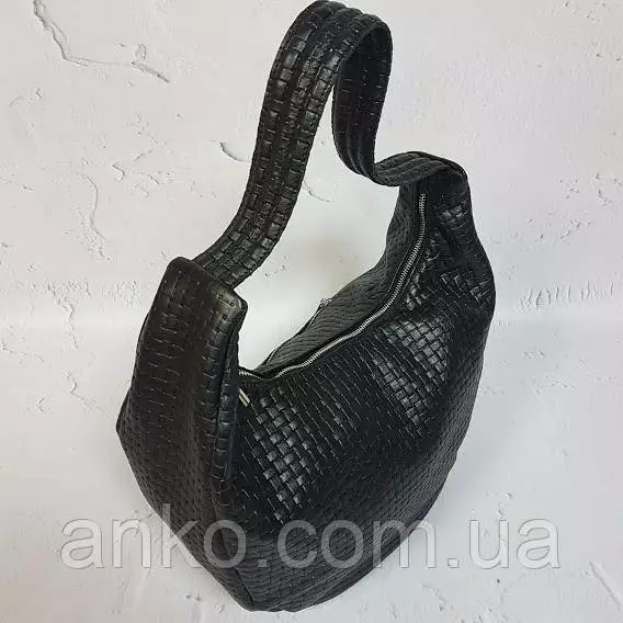 Сумка женская "Виола" натуральная кожа, черная тиснение венето