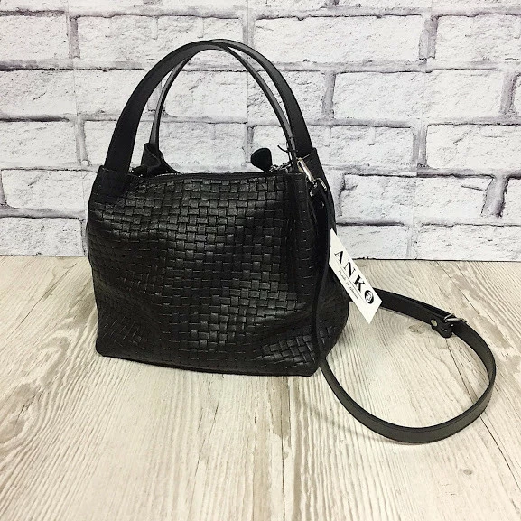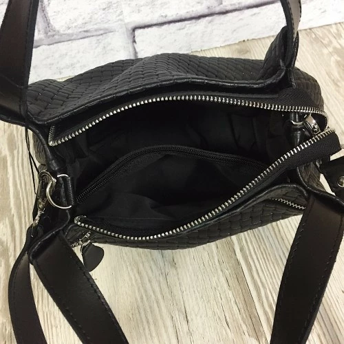 Сумка женская "Жаклин" натуральная кожа, черная плетенка венето
