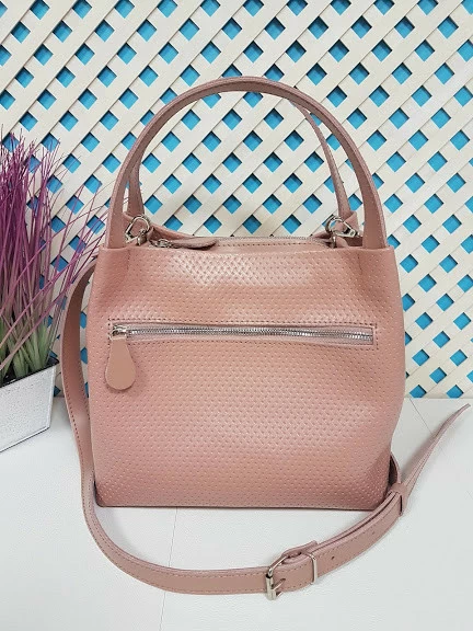 Сумка женская "Жаклин" натуральная кожа, розовая плетенка