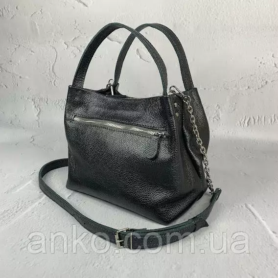 молнии. Плечевой ремень с декоративной цепочкой, регулируется по
