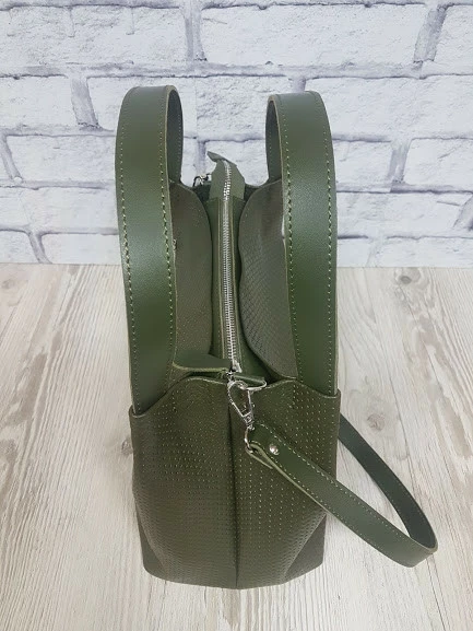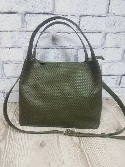 Сумка женская "Жаклин-плюс" натуральная кожа, хаки плетенка