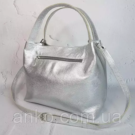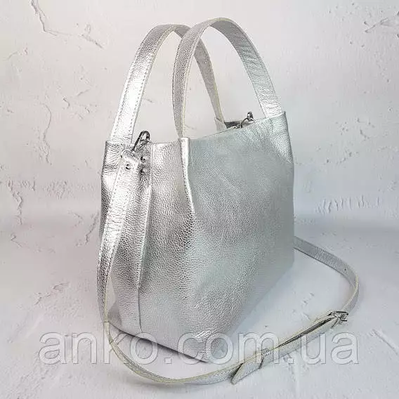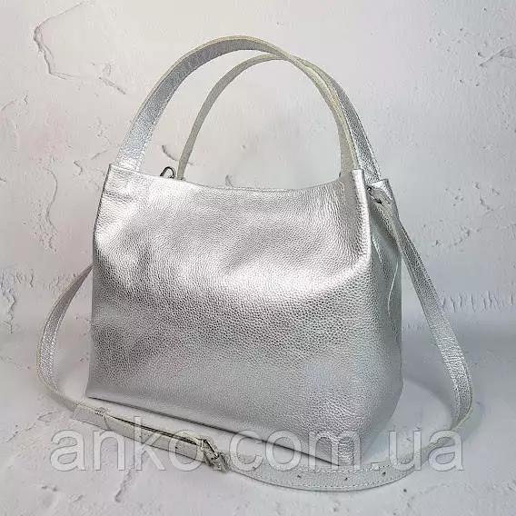 Сумка женская "Жаклин-плюс" натуральная кожа, серебряный флотар