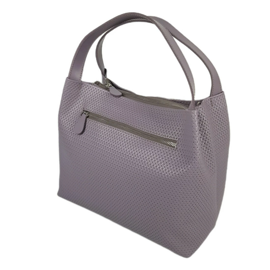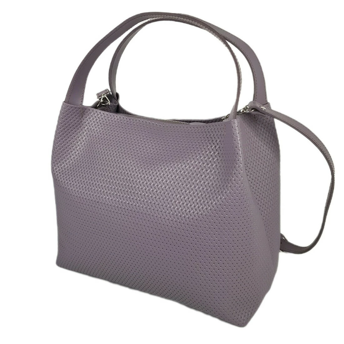 Сумка женская "Жаклин-плюс" натуральная кожа, серо-сиреневая плетенка